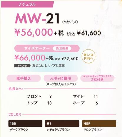・化繊ナチュラル毛(ネープ部人毛ミックス)
