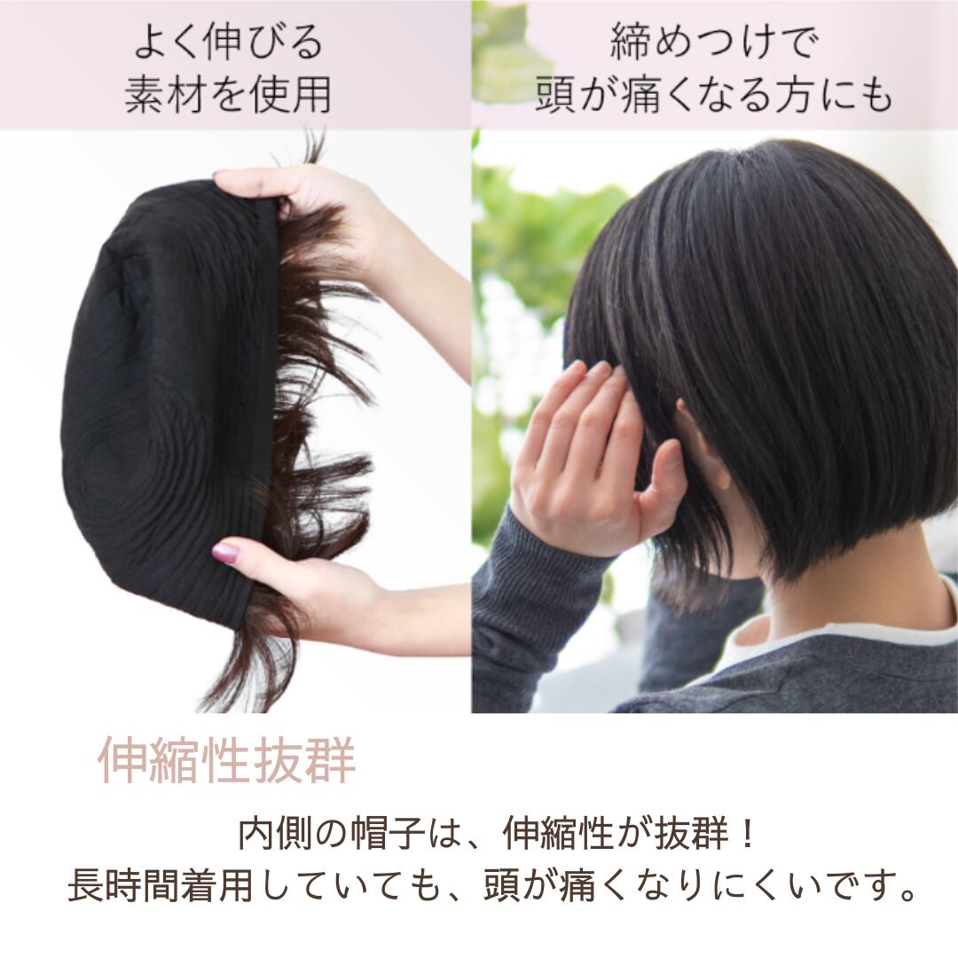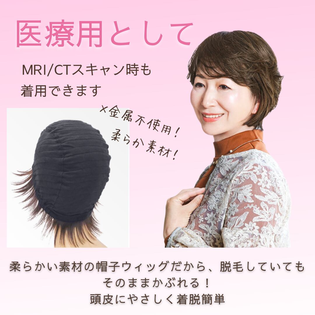 プリシラの帽子ウィッグは、かぶるだけで自然な印象に。